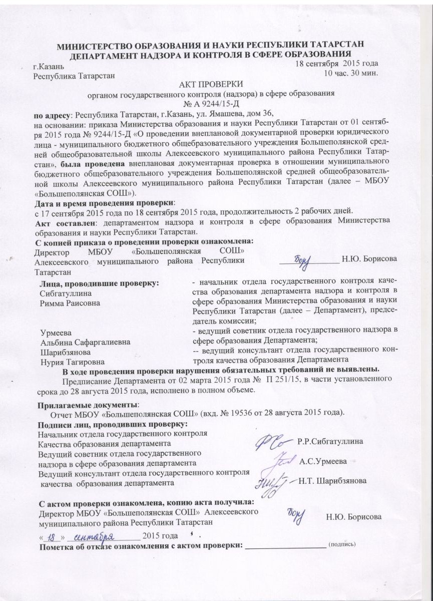 ► Акт проверки органом государственного контроля (надзора) в сфере образования № А 9244/15-Д