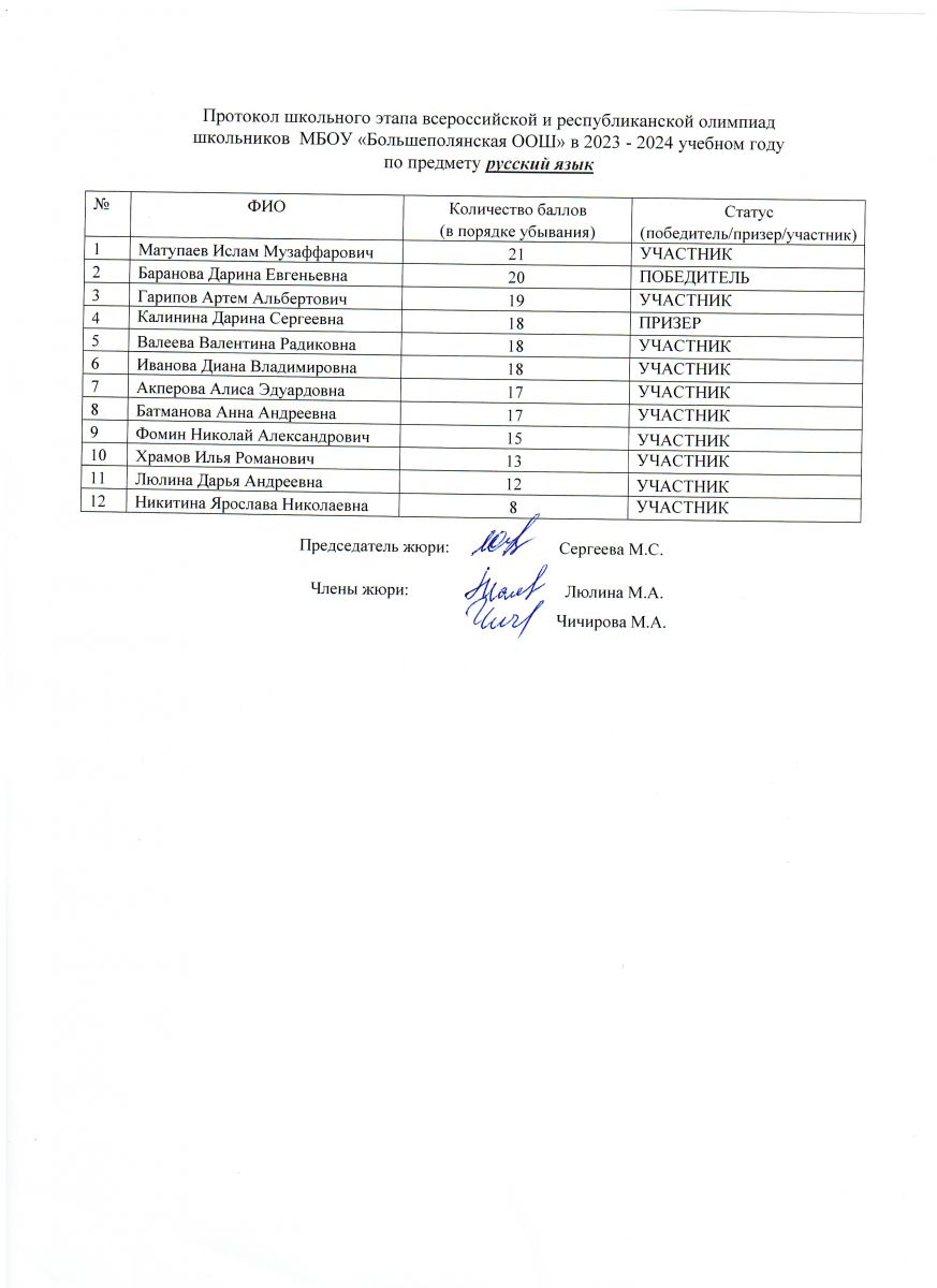 | Короткое название: | МБОУ "Большеполянская ООШ" |