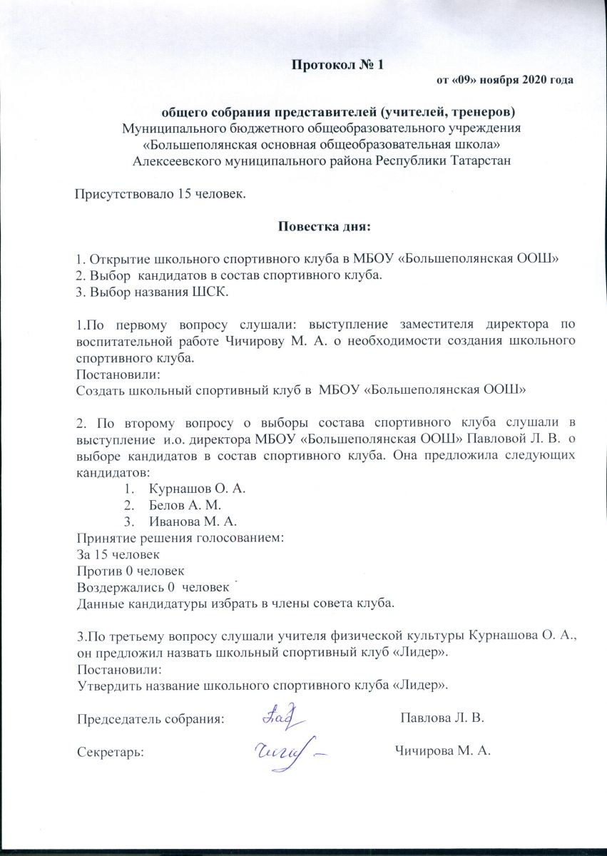 Устав школьного спортивного клуба МБОУ Большеполянская ООШ