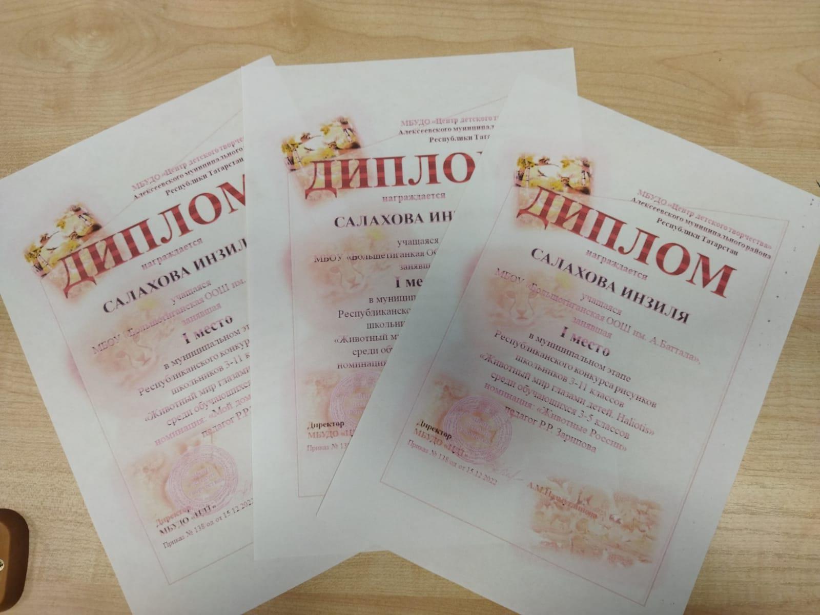 Ученица IV класса Салахова Инзиля участвовала в муниципальном этапе Республиканского конкурса рисунков "Животный мир глазами детей Haliotis" среди обучающихся 3-5 классов и заняла 1 места в трёх номинациях. Руководитель Зарипова Р.Р. Поздравляем!