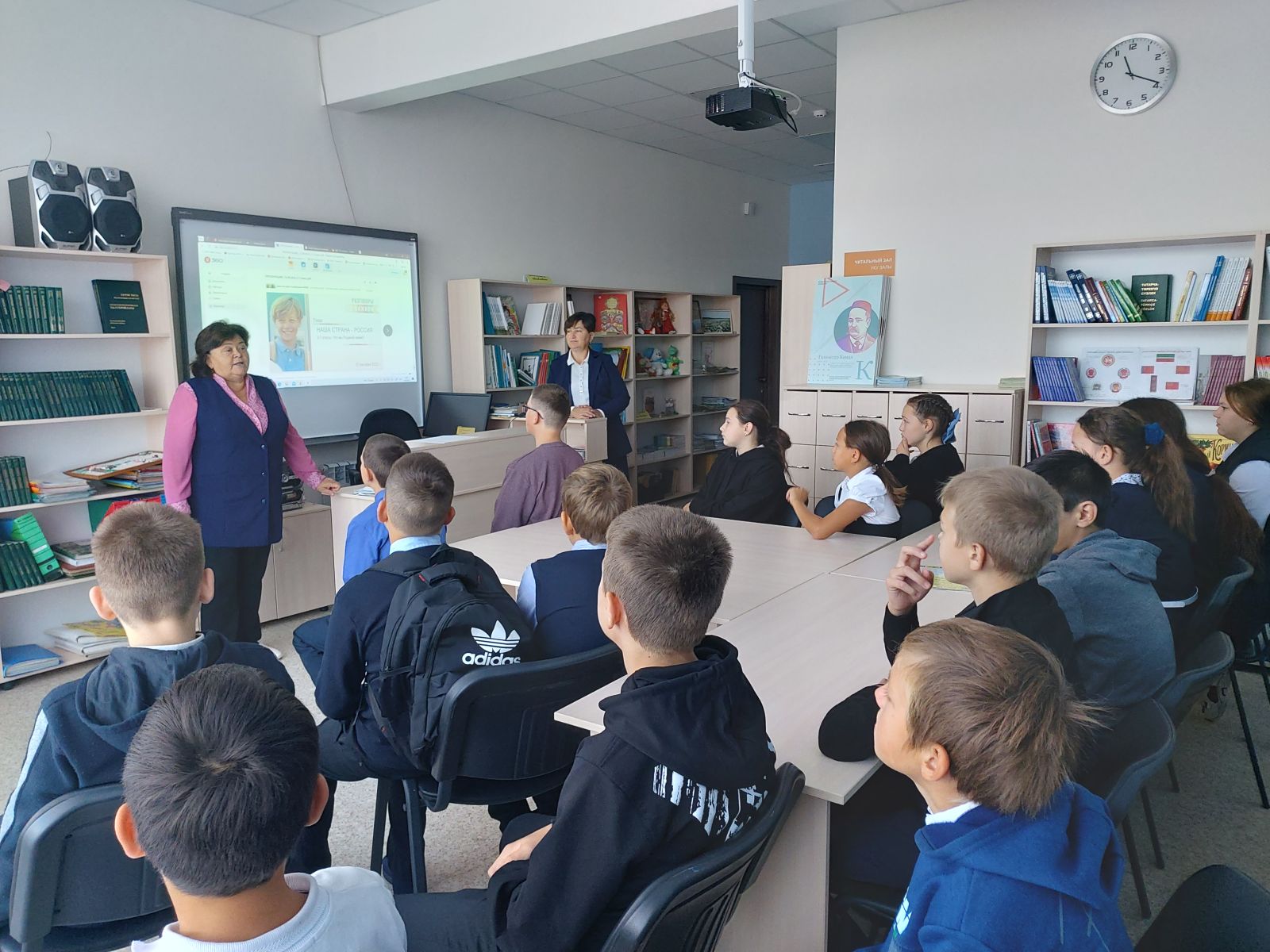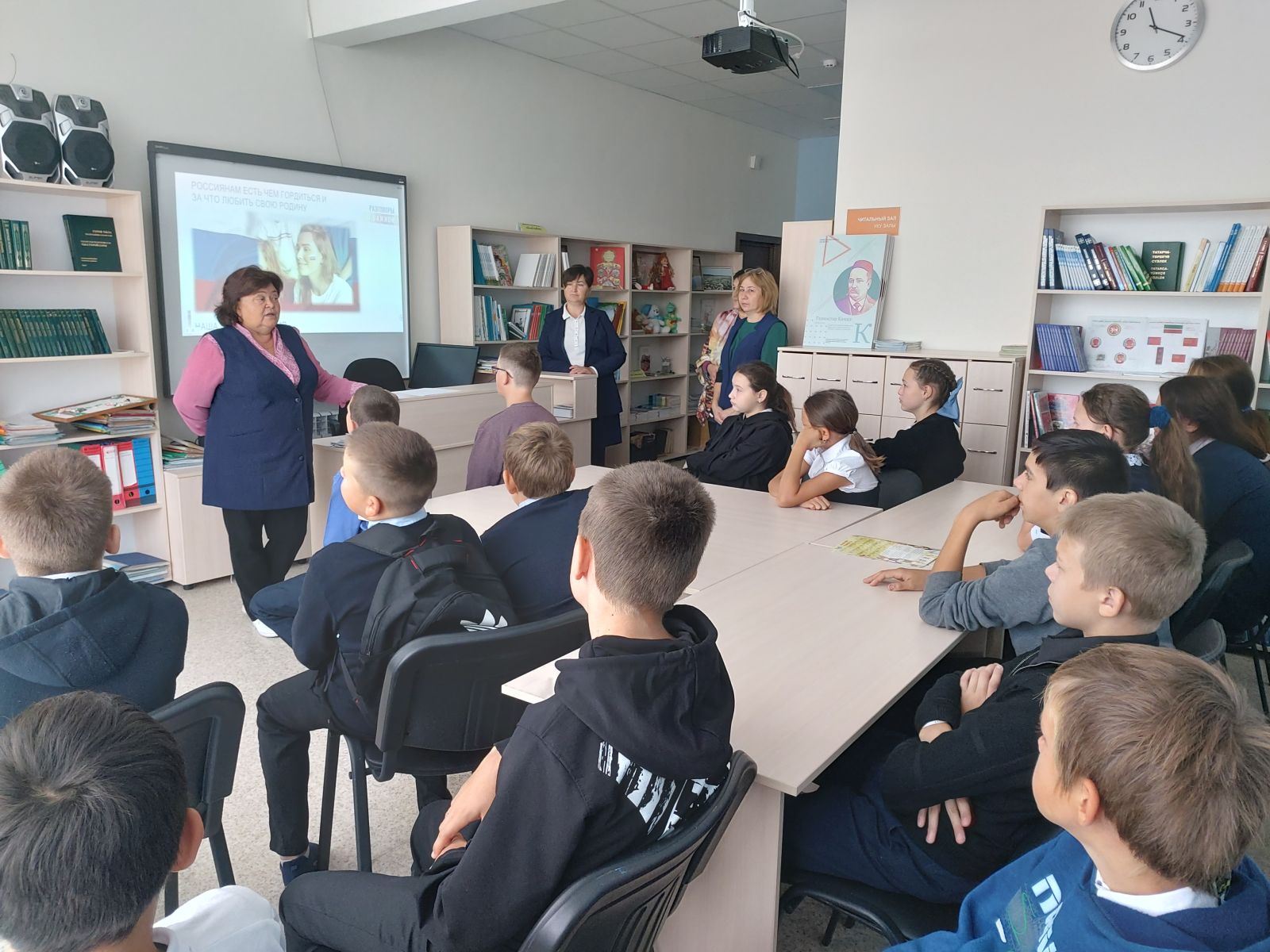В рамках программы внеурочной деятельности "Разговоры о важном", во всех классах провели классные часы на тему "Наша страна - Россия"