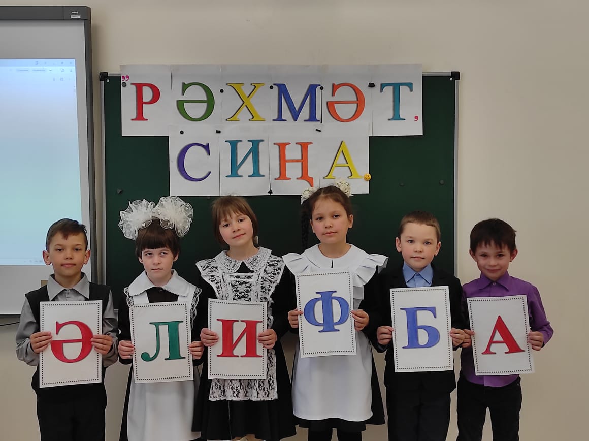 Бүген безнең мәктәптә зур бәйрәм -Әлифба бәйрәме. Әле 1 нче сентябрь иртәсендә генә мәктәп бусагасын атлап кергән нәни дусларыбыз бүген беренче җиңүләрен бәйрәм итәләр. Әлифба укучыларны хәрефләр танырга, алардан иҗекләр, сүзләр төзергә өйрәтте. Киләчәктә дә аларга белем илендә яңа җиңүләр, уңышлар телибез.