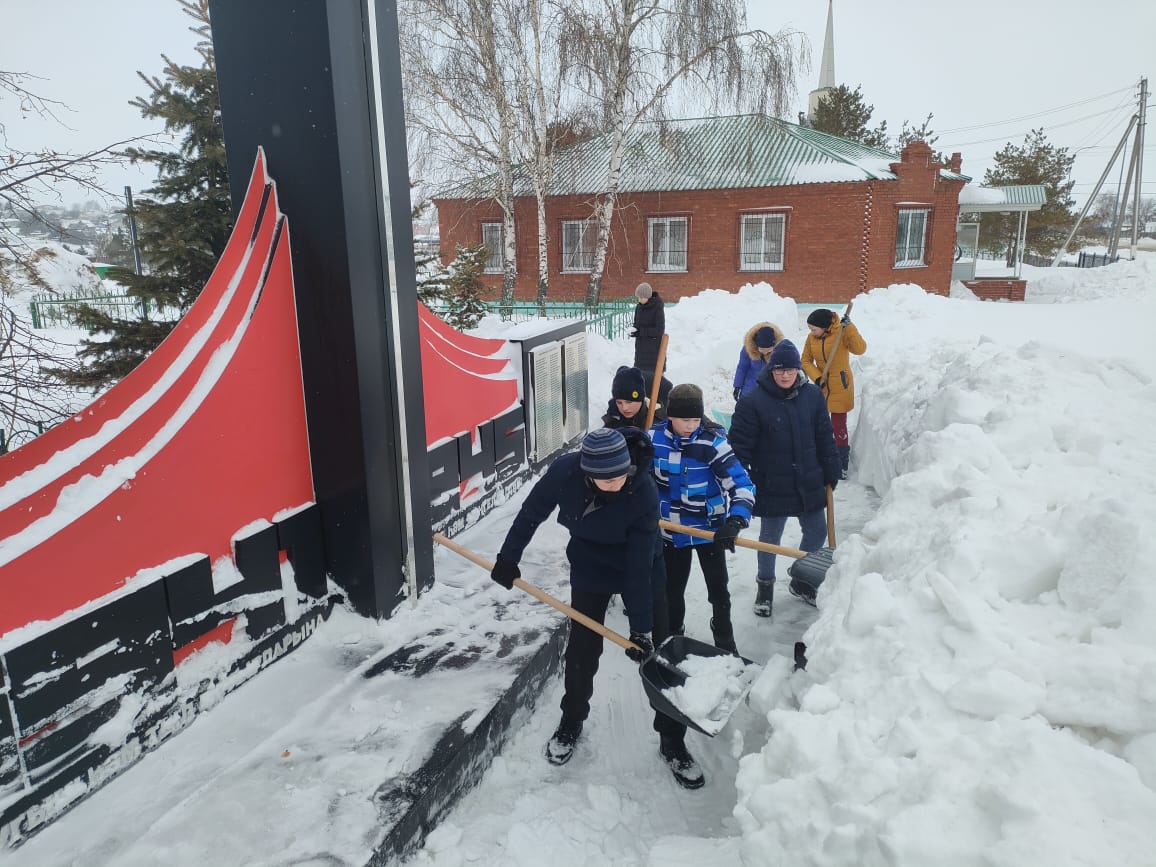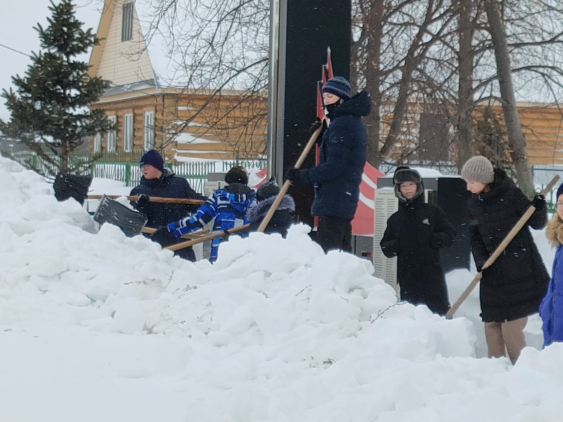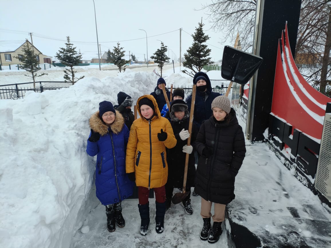 Юнармейцы нашей школы почистили снег у памятника погибшим воинам. Школьники также убрали снег у дома ветерана ВОВ. Деятельность движения направлена на воспитание в юнармейцах доброты, верности, достоинства, любви к Родине и культуре.