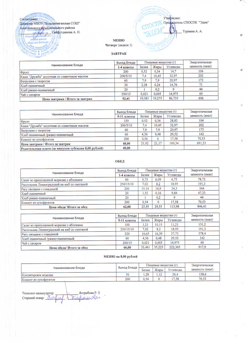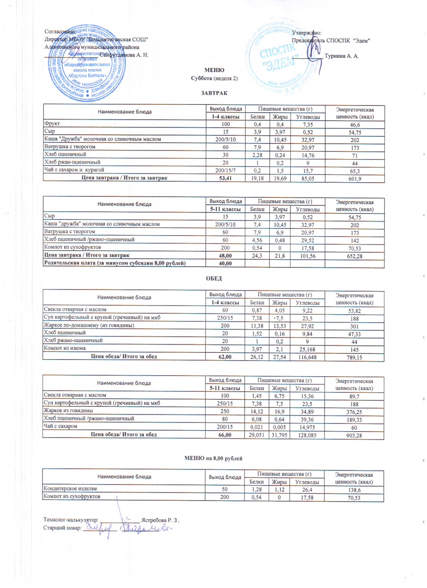 - 12 дневное меню по МБОУ "Большетиганская ООШ имени Абдуллы Баттала" (Дошкольная группа)