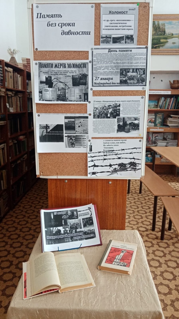 К этой дате в библиотеке Билярской школы была оформлена выставка-память «Без срока давности», на которой представлена художественная литература и информация где говорится о чудовищных злодеяниях фашистов за колючей проволокой лагерей смерти.27 гыйнвар-Халыкара Холокост корбаннарын искә алу көне.