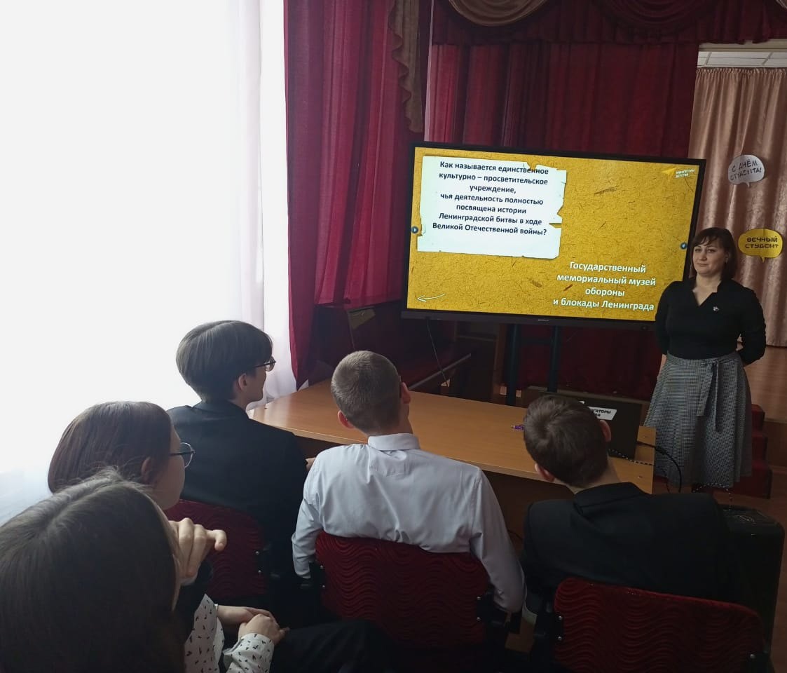 27 янвяря -особая дата в истории нашей страны. В этот день, в 1944 году была снята блокада Ленинграда, которая продолжалась 900 долгих дней и ночей. Советник директора по воспитанию Билярской школы Борисова Н. Ю. провела с обучающимися 10 класса тематическую беседу, посвященную 80 летию со дня полного освобождения Ленинграда от фашисткой блокады, с проведением интеллектуальной игры "Важно в памяти сберечь", для пополнения багажа исторических знаний о блокаде Ленинграда. Была организована тематическая выставка.