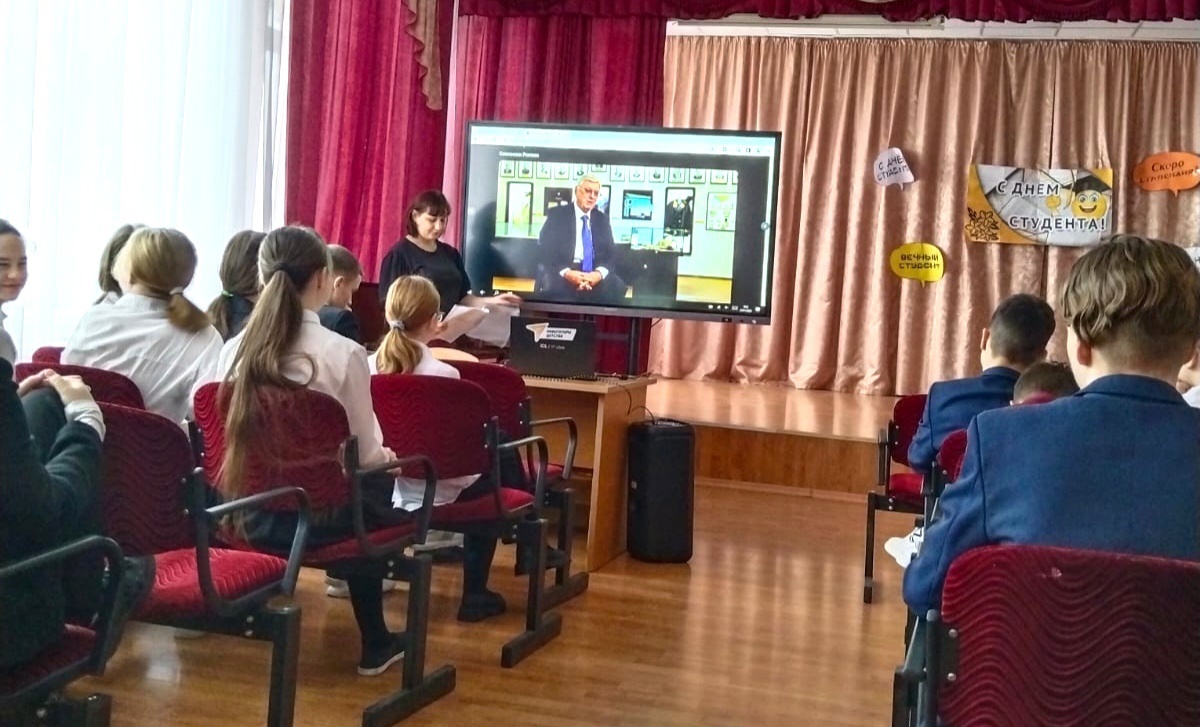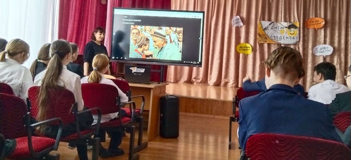 Затем вся школа проследовала в свои классы на Разговоры о важном на тему "Союзники России"