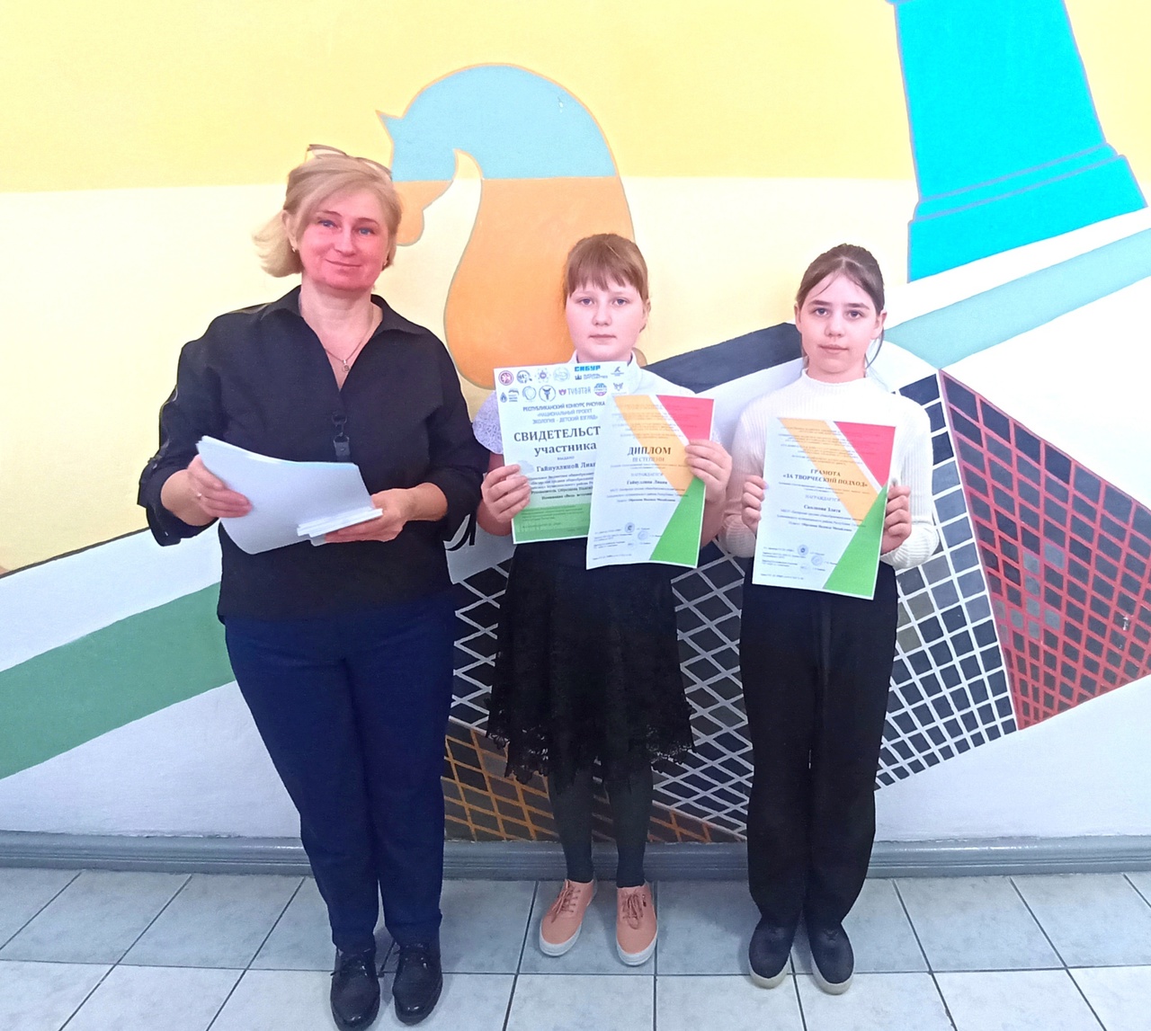 Сегодня еженедельная линейка состоялась с поднятия флагов и пения гимнов РФ и РТ. Заместитель директора по воспитательной работе Билярской школы Михайлова Е. В. вручила грамоты и дипломы обучающимся, а также учителям за результаты в олимпиадах и других конкурсах.