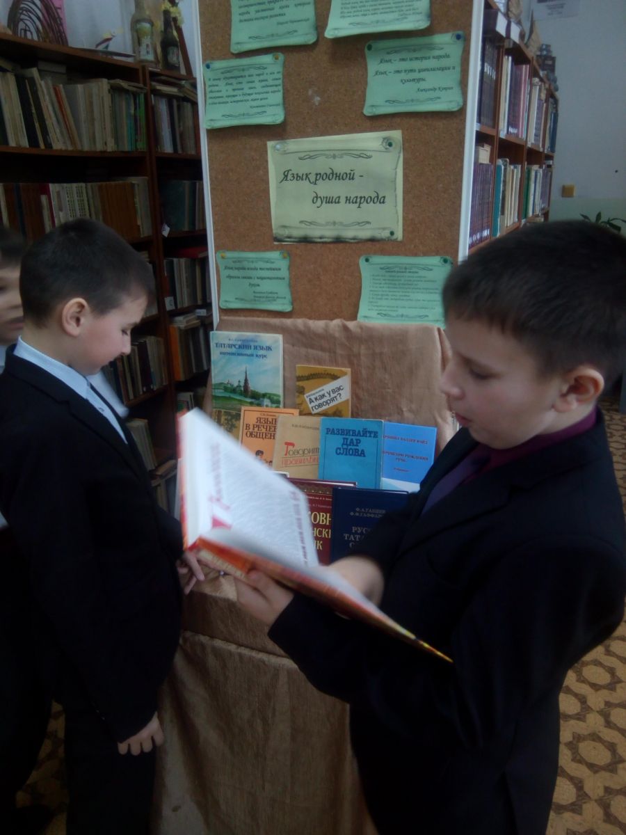 Выставка, приуроченная Году родных языков и народного единства в Республике Татарстан, «Язык родной – душа народа». На выставке представлены книги народов России: на русском, татарском, чувашском …