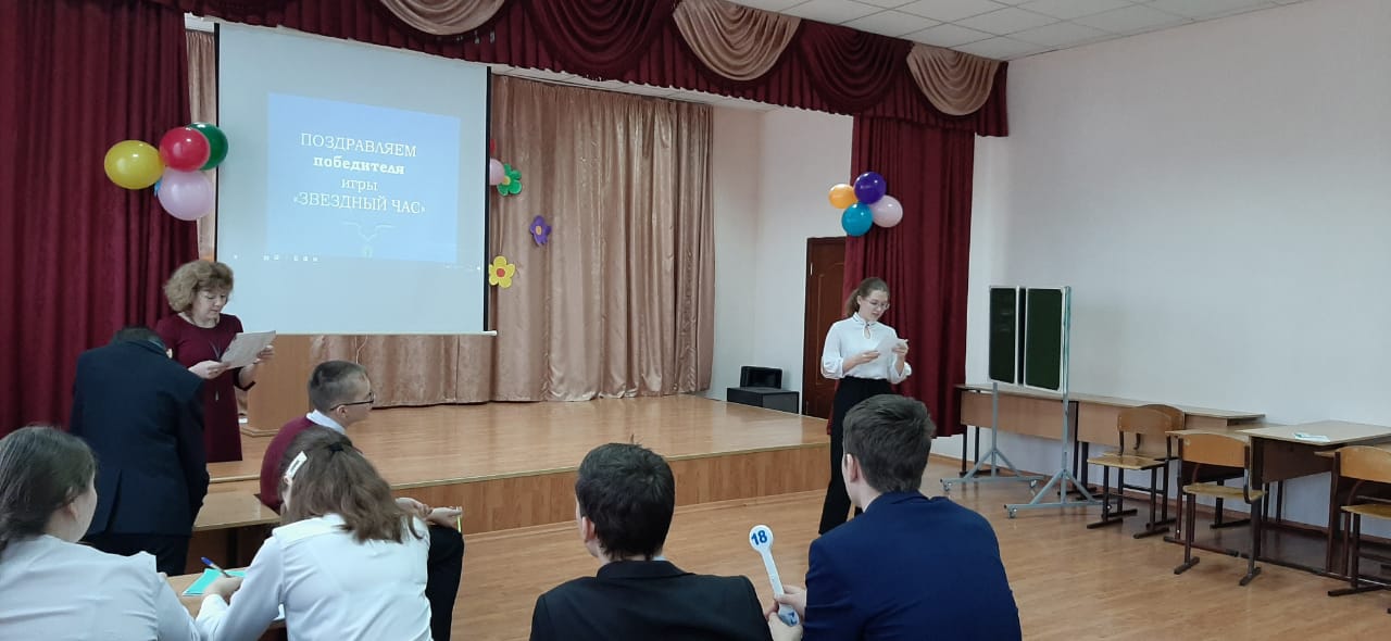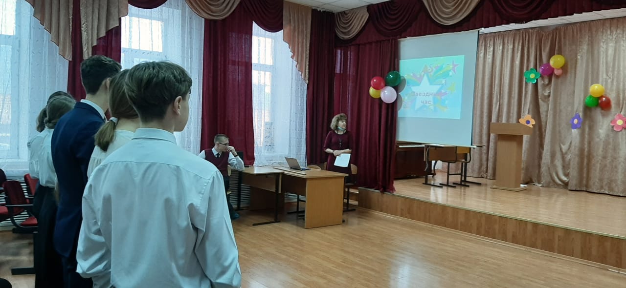 26.01.2021г. Чернеева.А.А провела с учащимися 9 класса "Звёздный час". Ребята доблестно отвечали на вопросы и до финала дошли Шогина.А и Капитонова.К. Победитель- Капитонова.К.