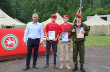 В лагере «Юный парашютист» Высокогорского района состоялось закрытие юнармейской смены «Растим патриотов». Участников смены наградил заместитель председателя правления ДОСААФ РТ Владимир Трошин.