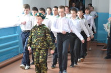 В завершении месячника военно-патриотического воспитания в школе 26 февраля прошел школьный конкурс «Смотр строя и песни», на котором учащиеся под марш исполнили песни военных лет. Жюри определило победителей:
