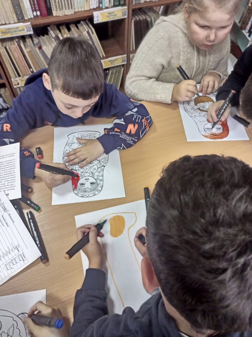 В преддверии праздника Дня народного единства, советник по воспитательной работе и библиотекарь МБОУ "Билярская СОШ" с обучающимися пришкольного лагеря, разукрашивали матрешек в костюмах разных национальностей и была организована выставка.