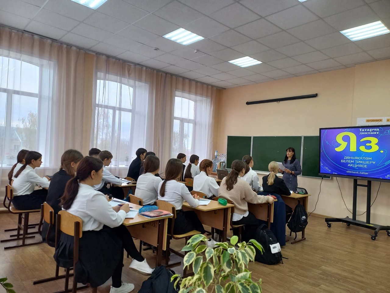 14 октября в МБОУ “Билярская СОШ” прошла Всемирная акция по проверке грамотности на татарском языке “Татарча диктант”. Акция прошла в доброжелательной обстановке. Все участники мероприятия остались довольны."Татарча диктант "бөтендөнья акциясе.14 октябрьдә Биләр урта гомуми белем бирү мәктәбендә татар телендә грамоталылыкны тикшерү буенча "Татарча диктант" бөтендөнья акциясе узды. Акция яхшы шартларда узды. Чарада катнашучыларның барысы да канәгать калды.