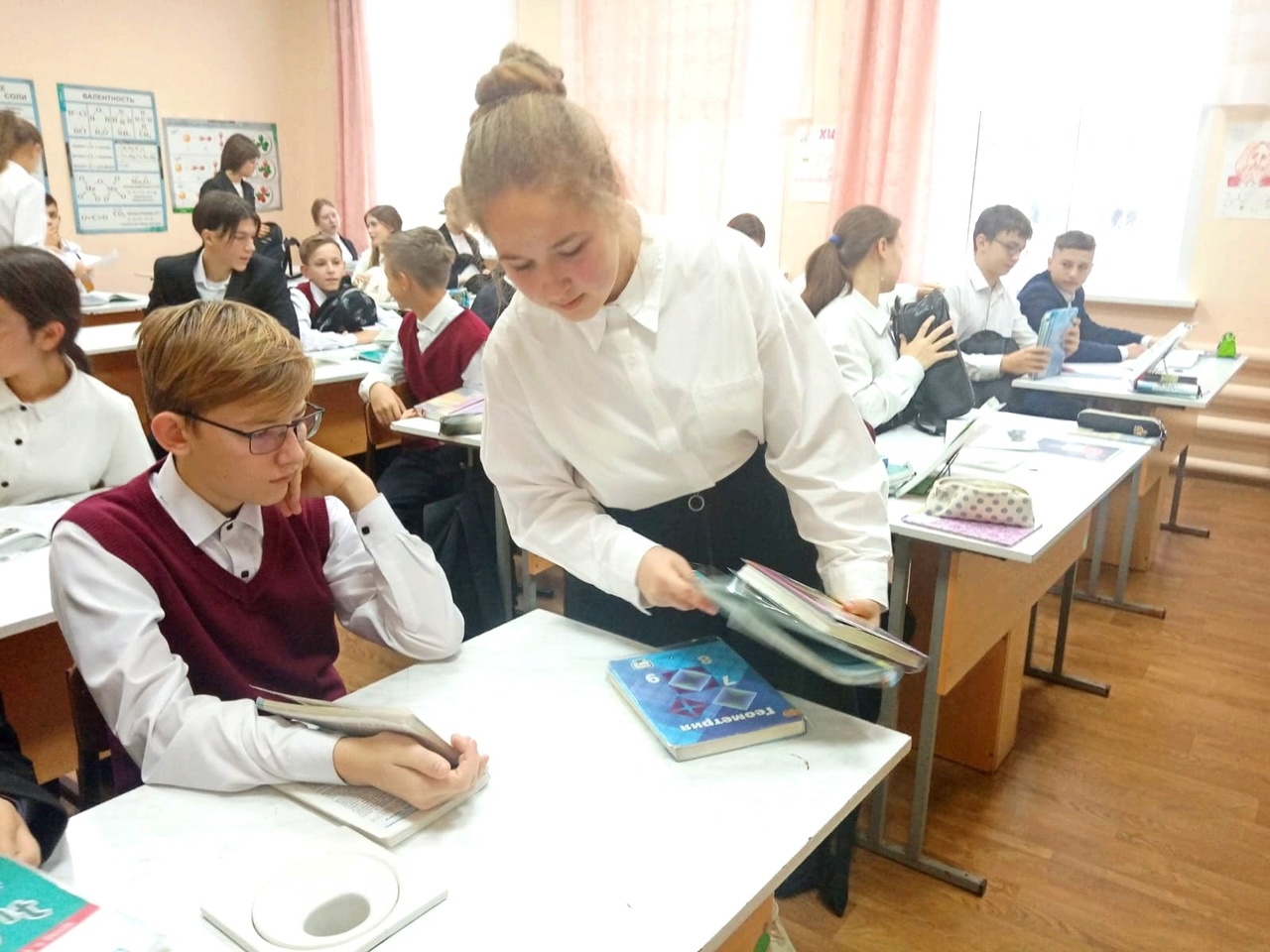Сегодня в школе прошёл рейд по проверке сохранности учебников, приуроченный Международному дню школьных библиотек. Совет старшеклассников и работник библиотеки проверили наличие учебников согласно расписанию, обложки.