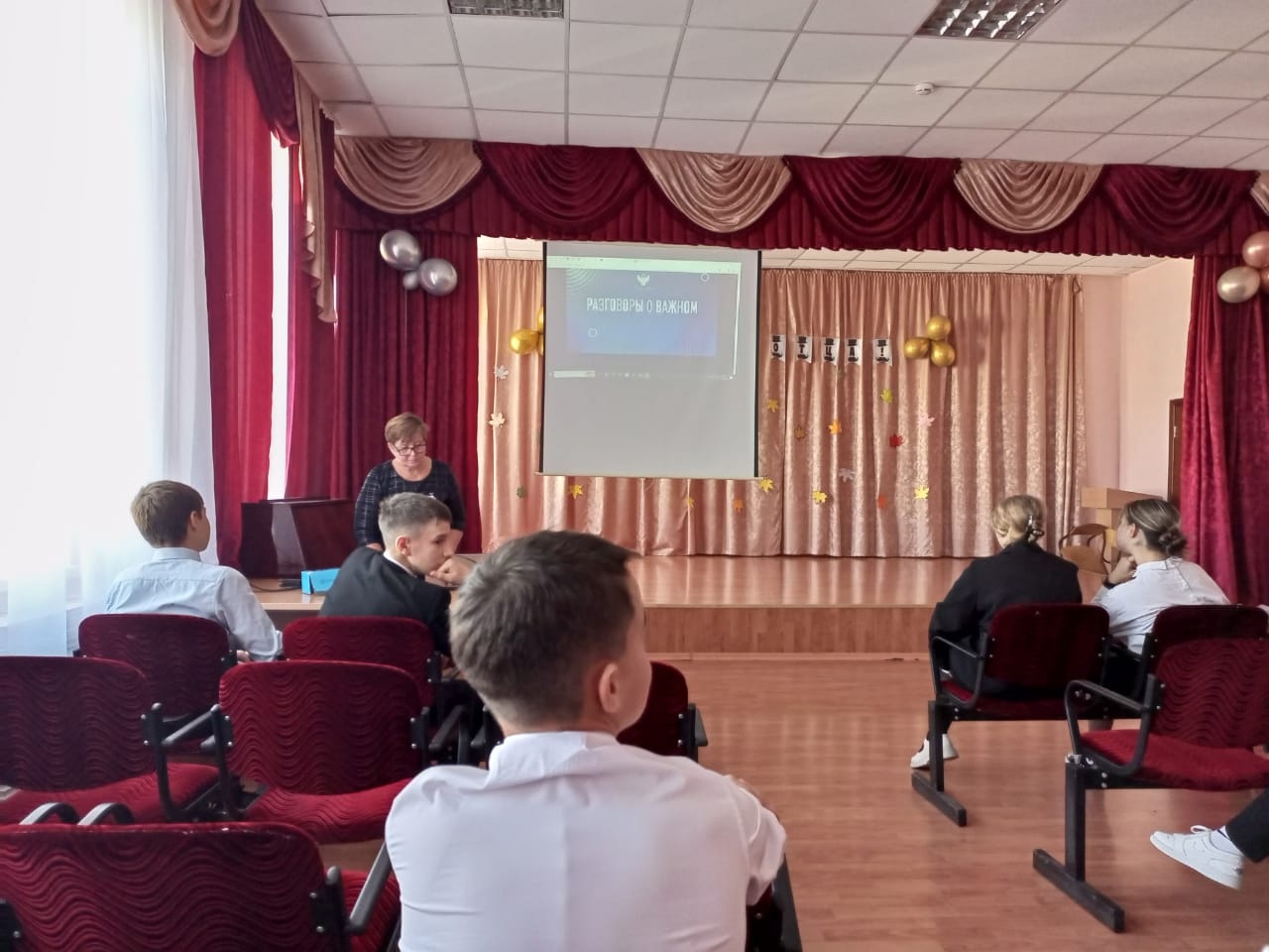 Традиционная еженедельная линейка с выносом флагов и пения гимнов РФ и РТ прошла сегодня в МБОУ "Билярская СОШ". Директор школы Климова М.А. рассказала о планах на предстоящую неделю, а обучающиеся 8 класса подвели итоги новостями за прошлую неделю. Во всех классах проведены разговоры о важном на тему "По ту сторону экрана. 115 лет кино в России".