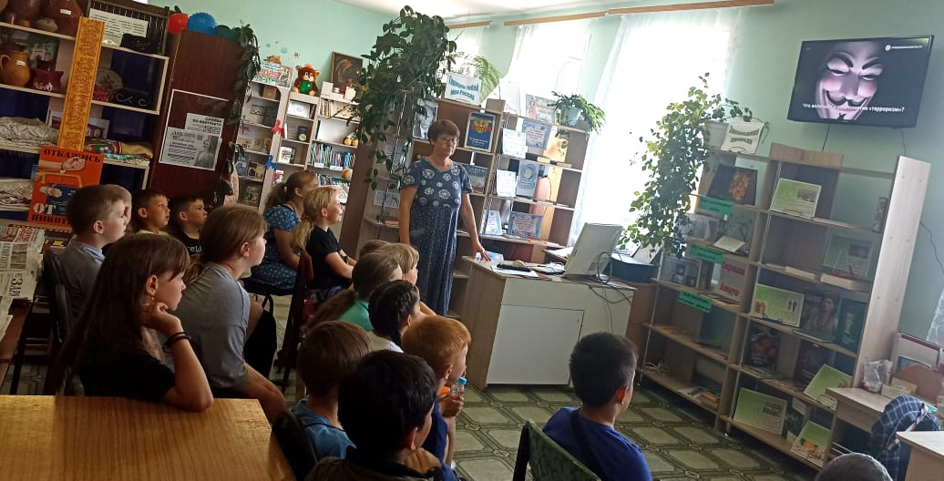В пришкольном оздоровительном лагере "Радуга" МБОУ "Билярская СОШ" библиотекарь ознакомила ребят с основными правилами поведения в условиях теракта. С сожалением приходится признать: мы живем в век терроризма. И поэтому каждый человек — взрослый и ребенок — должен знать сущность терроризма, его истоки и возможные способы защиты от него. Посмотрели детский обучающий мультфильм о поведении при нападении террористов «Зина, Кеша и террористы»