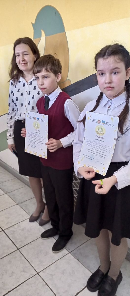 Мальцева Камилла, 5б класс, 2 место, руководитель: Мальцева А.А. Калинина Стефания, 5а класс, 3 место, руководитель: Обрезкова О.С.,Федосов Максим , 6б класс, 3 место, руководитель: Федосова М.С., Хатыпов Рузаль, 8а класс, 3 место, руководитель: Абрарова А.А. Поздравляем и ребят, и их руководителей.