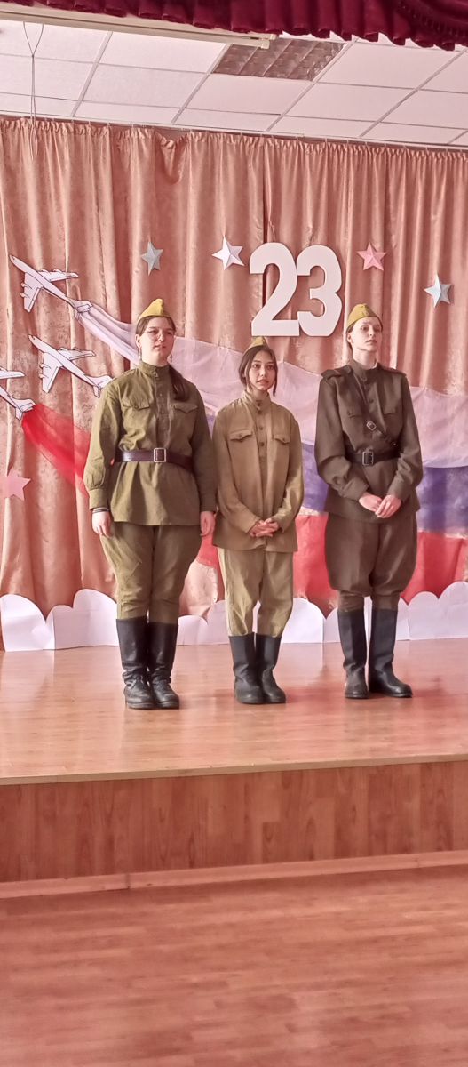 22.02 в нашей школе прошло мероприятие, посвящённое Дню защитника Отечества, обучающиеся со 2-11 классы, показали исценирование военно-патриотической песни, все дети выступили достойно. В этот день все классы поздравили своих мальчиков, а мы поздравили своих коллег. С праздником 23 февраля, наши дорогие мужчины, юноши и мальчики!