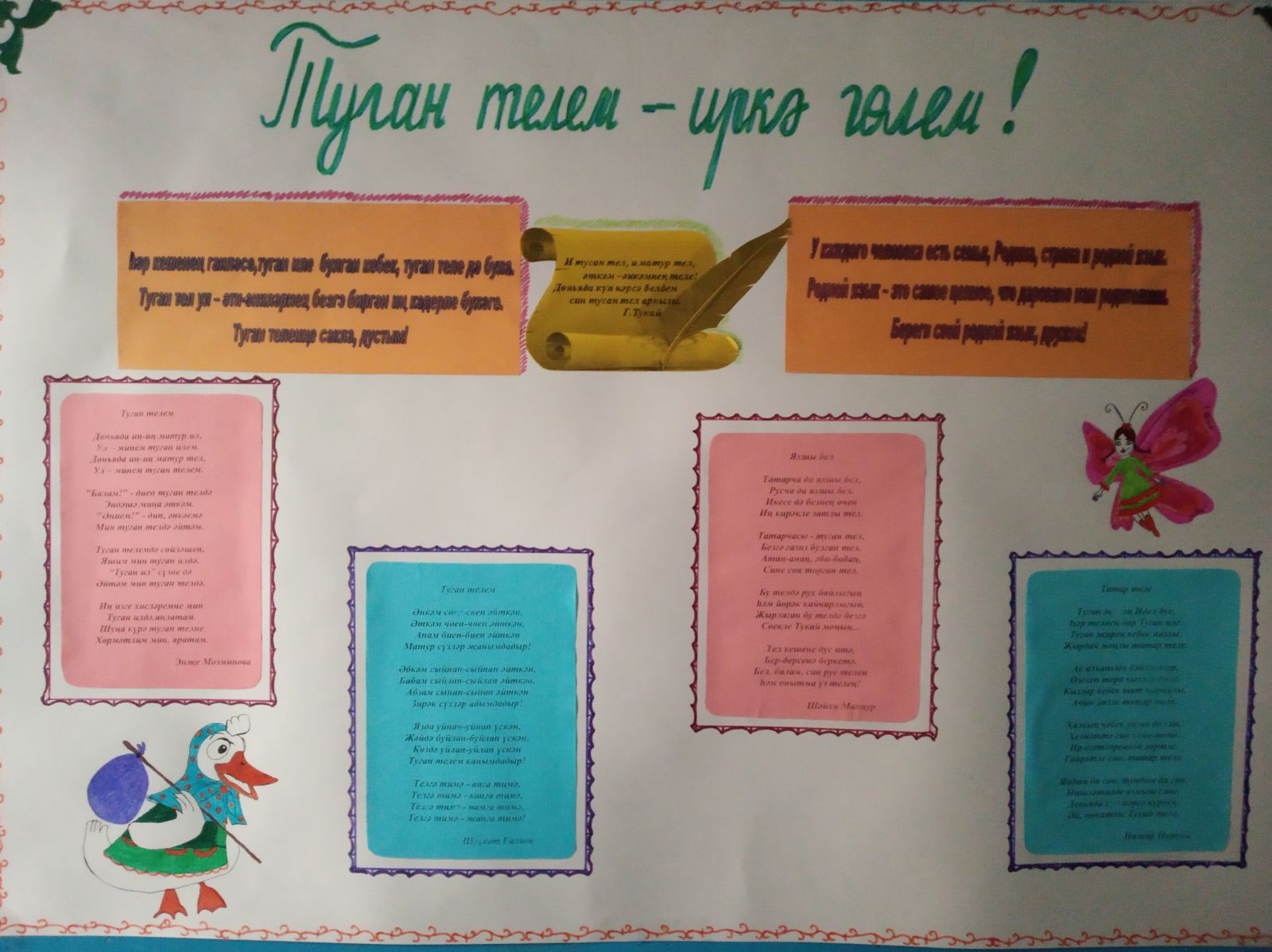 Туган тел көне кысаларында укучылар "Әкияттә кунак" рәсем конкурсында катнаштылар, стена газеталары чыгардылар һәм күргәзмә рәсмиләштерделәр.