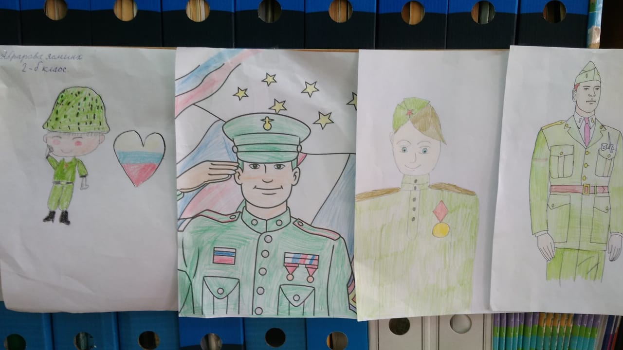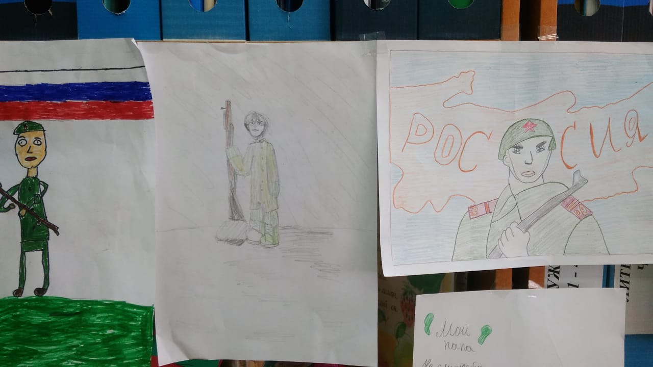 В рамках военно-патриотической декады, начальные классы приняли участие в конкурсе рисунков "Мой папа - солдат".