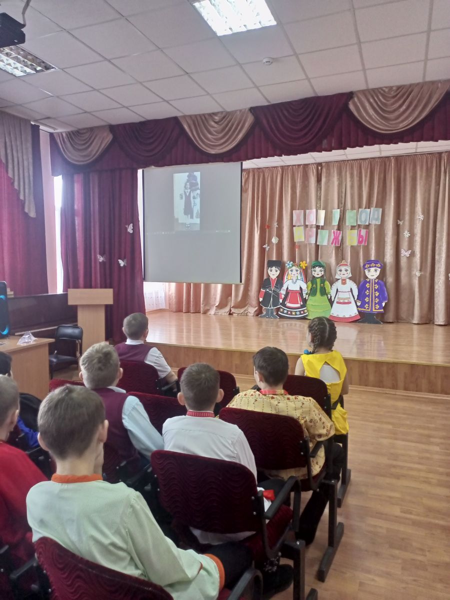 Тәрбия эше кысаларында, дуслык атналыгы безнең мәктәпнең актлар залында "Дуслык әйләнесе" белән тәмамланды, укучылар үз чыгышларын безнең төбәк телләрендә әзерләделәр.