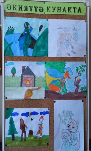 Второй день недели родного языка учащиеся 1-6 классов участвовали в конкурсе рисунков «Әкияттә кунакта”.Для учащихся 4 класса была проведена урок викторина « Я люблю русский, за то что...”, учащиеся 5 класса участвовали в КВН «Мин татарча сойлэшэм».