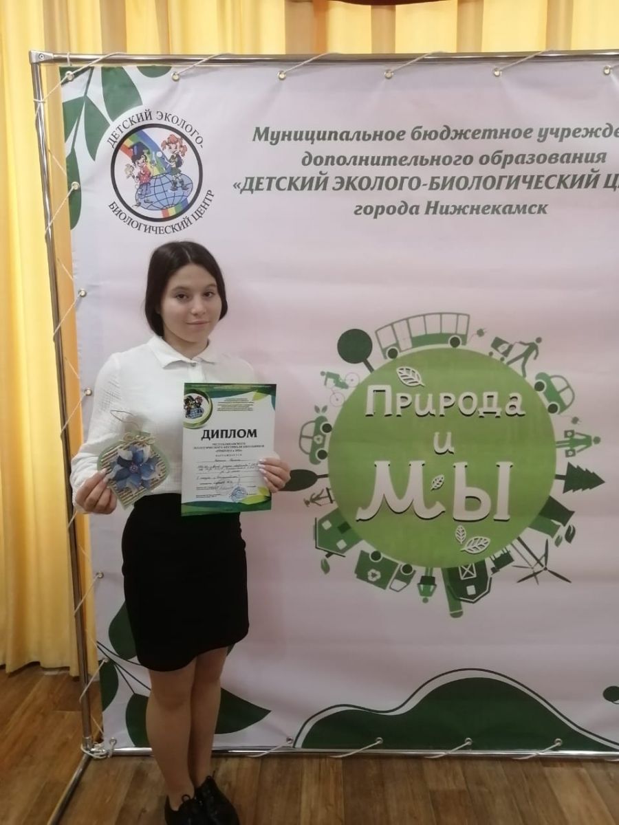 16.12.22 ел Түбән Кама шәһәренең "Балалар экология - биология үзәге" үзәгендә 8нче сыйныф укучысы Настина Эвелина "ЭКОмастерилка" ташландык материалдан ясалган эшләнмәләр конкурсында катнашты, "Джинс фантазияләре" номинациясендә 2нче дәрәҗә диплом һәм истәлекле бүләк белән бүләкләнде.