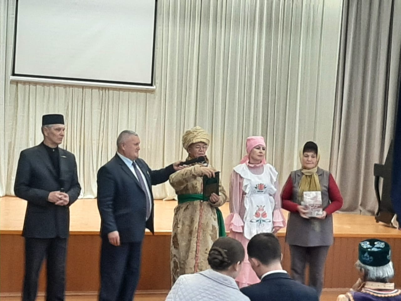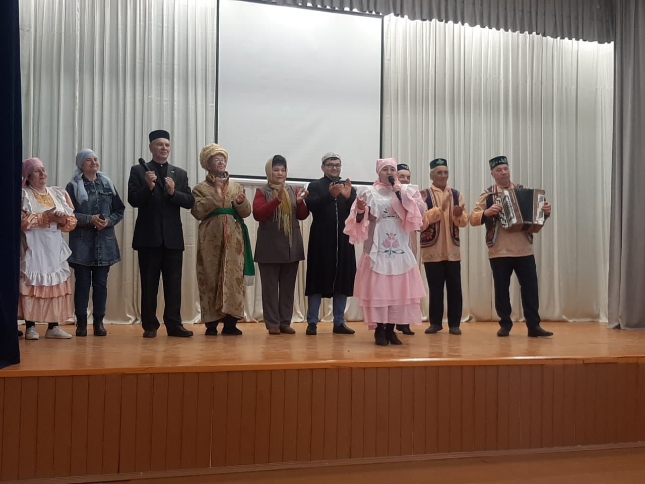 Встретили путешественников у Дома Культуры с хлебом и чакчаком. В зрительном зале Дома культуры их ожидал зажигательный танец танцевального коллектива «Радуга». Они рассказали об истории принятия ислама Волжской Булгарией и о его влиянии на развитие государства. Мероприятие завершилось концертной программой.