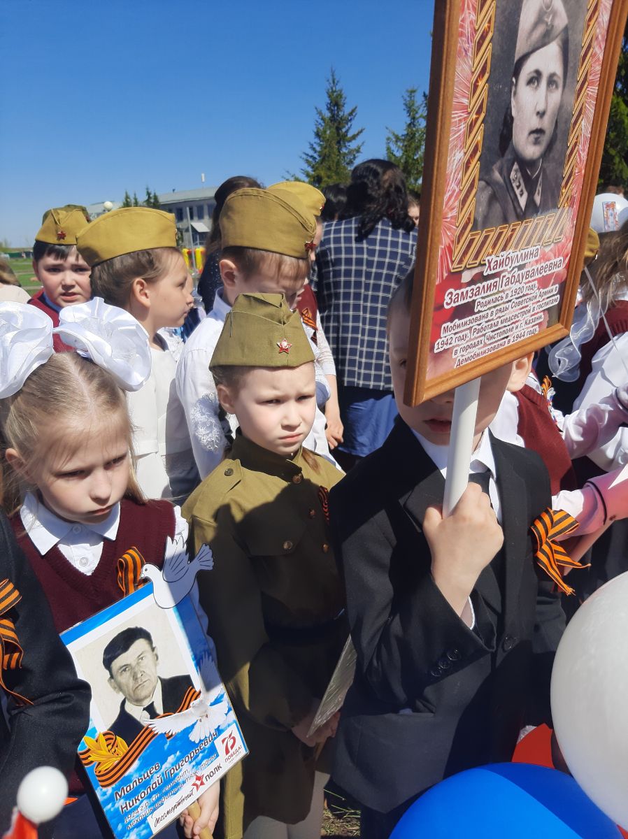 Биләр урта мәктәбе укучылары, Җиңү бәйрәме алдыннан, ветераннарны котладылар. Җырлар белән тигез саф белән аларның йортлары янында уздылар.