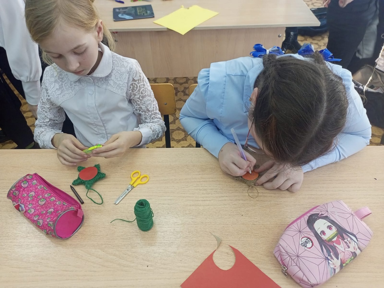 Активисты Центра детских инициатив совместно с советником директора по воспитанию Билярской школы Борисовой Н. Ю. , приняли участие в акции "Подарок для защитника", организовав мастер- класс по созданию подарка ко дню защитника Отечества для военнослужащих находящихся в зоне СВО.
