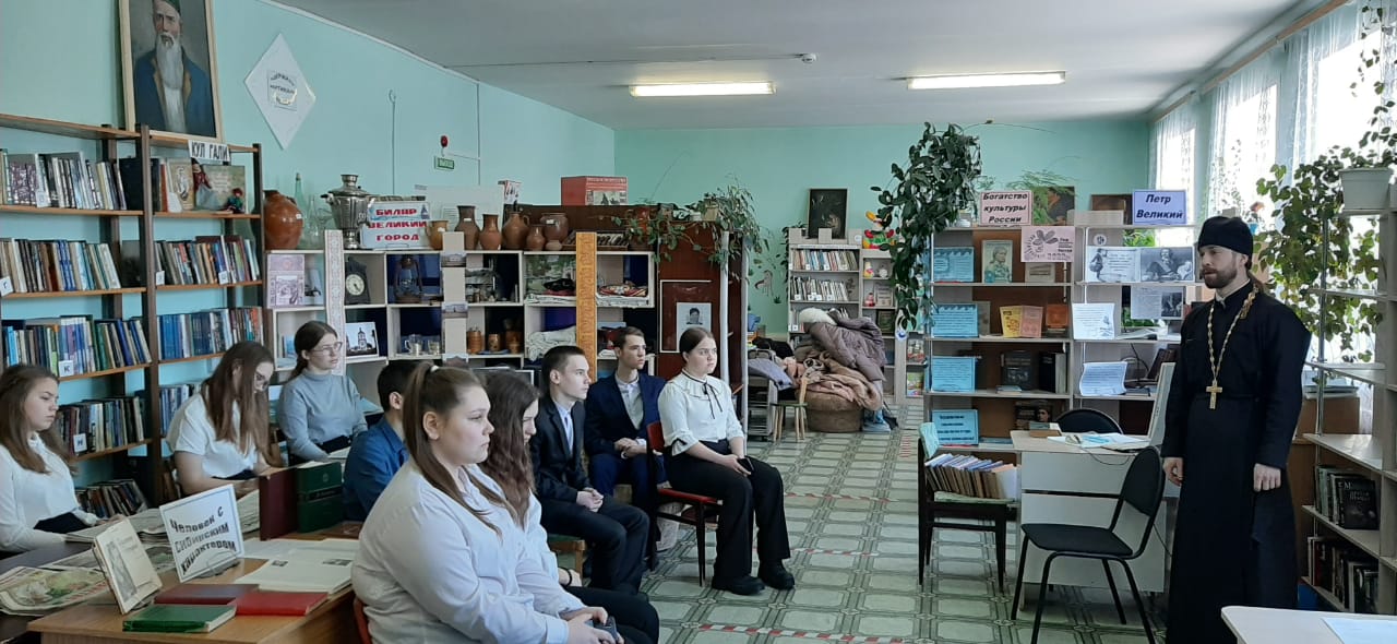 Учащиеся 10 класса МБОУ «Билярская СОШ», в рамках Года культурного наследия народов России, посетили сельскую библиотеку, где провели беседу о православной книге, о первых книгах Руси. Так же прошла встреча со священником прихода Архангела Михаила отцом Николаем, который рассказал о книге «Апостол» Ивана Федорова и ее появлении.