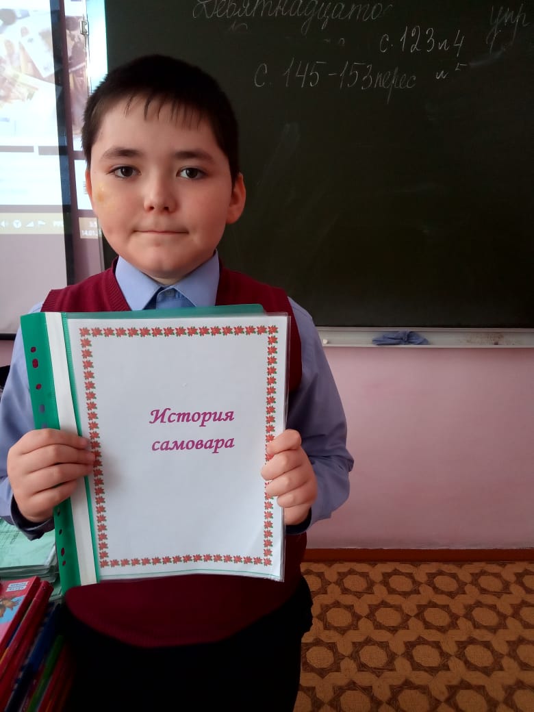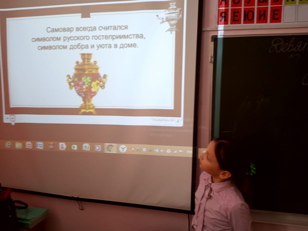 В рамках недели родного языка и литературы в 4-а классе было проведено внеклассное мероприятие "История самовара".Дети познакомились с историей самовара.Узнали,что самовар - это часть жизни и судьбы нашего народа, отраженная в его пословицах и поговорках, в произведениях классиков нашей литературы -Пушкина, Гоголя,Блока и Горького.