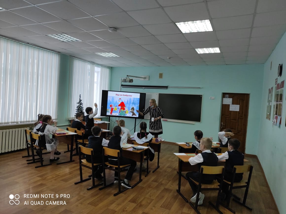 В рамках недели родного языка во 2 б классе прошел урок "родного (татарского) языка "Яңа ел бәйрәме" тексты. На уроке были использованы разные виды деятельности. Урок прошёл в игровой форме и детям понравился.