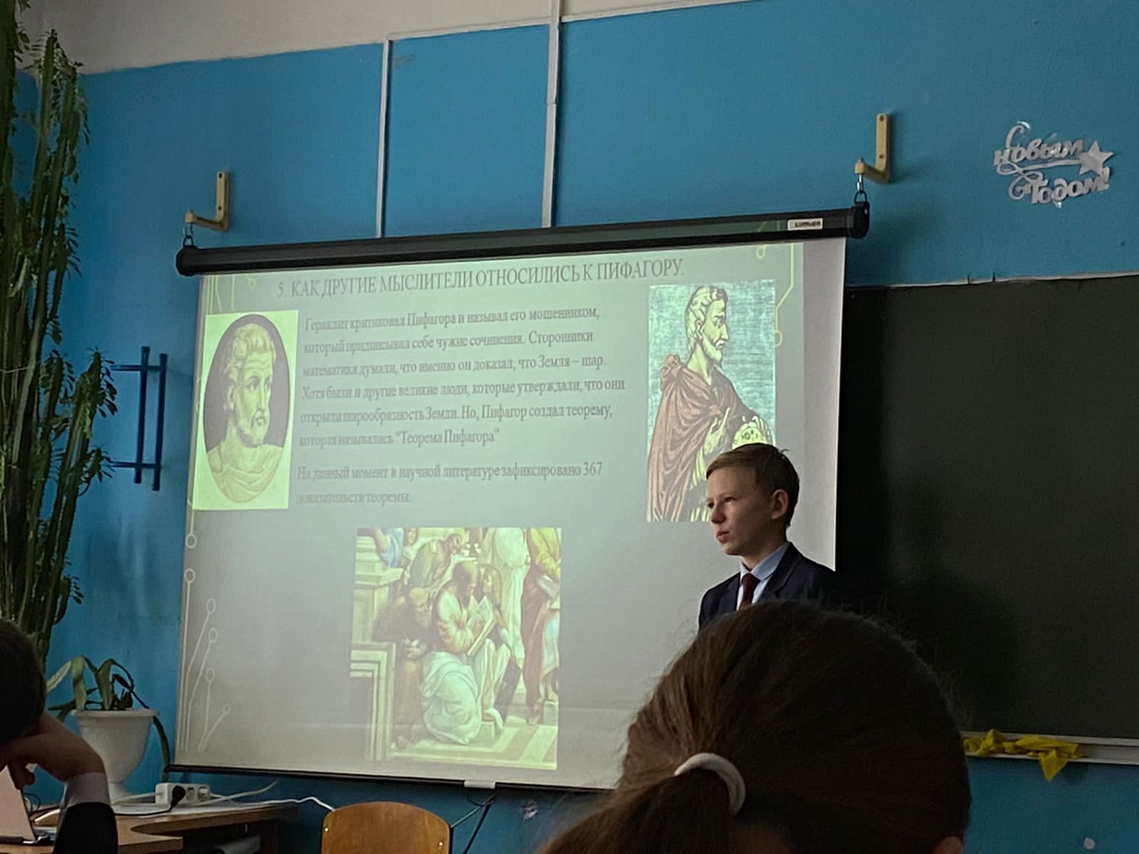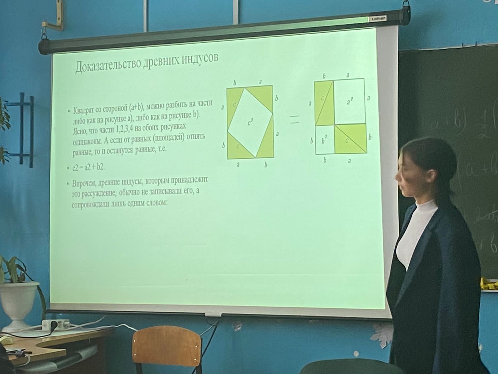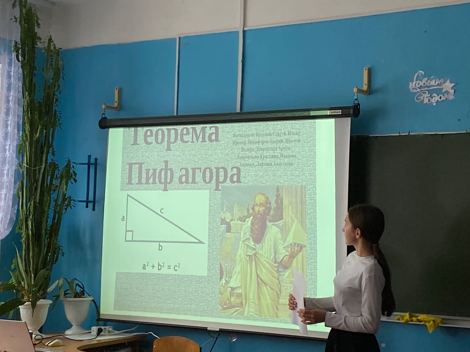 В рамках Недели математики среди обучающихся 8 классов прошло внеклассное мероприятие "День Пифагора". Ребята нашли очень много интересных фактов о биографии ученого, а также познакомили с интересными доказательствами "Теоремы Пифагора".