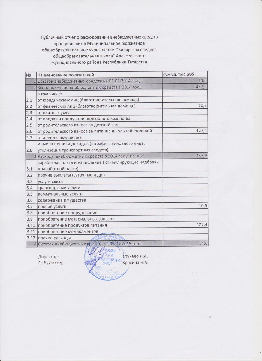 Публичный отчёт о расходовании внебюджетных средств 2014г.