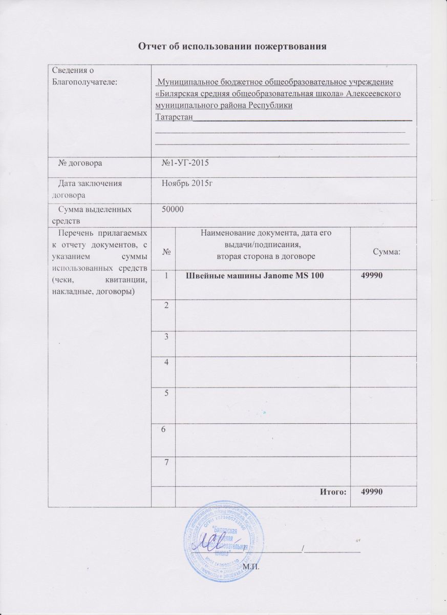 Отчёт о расходовании внебюджетных средств в 2014 году