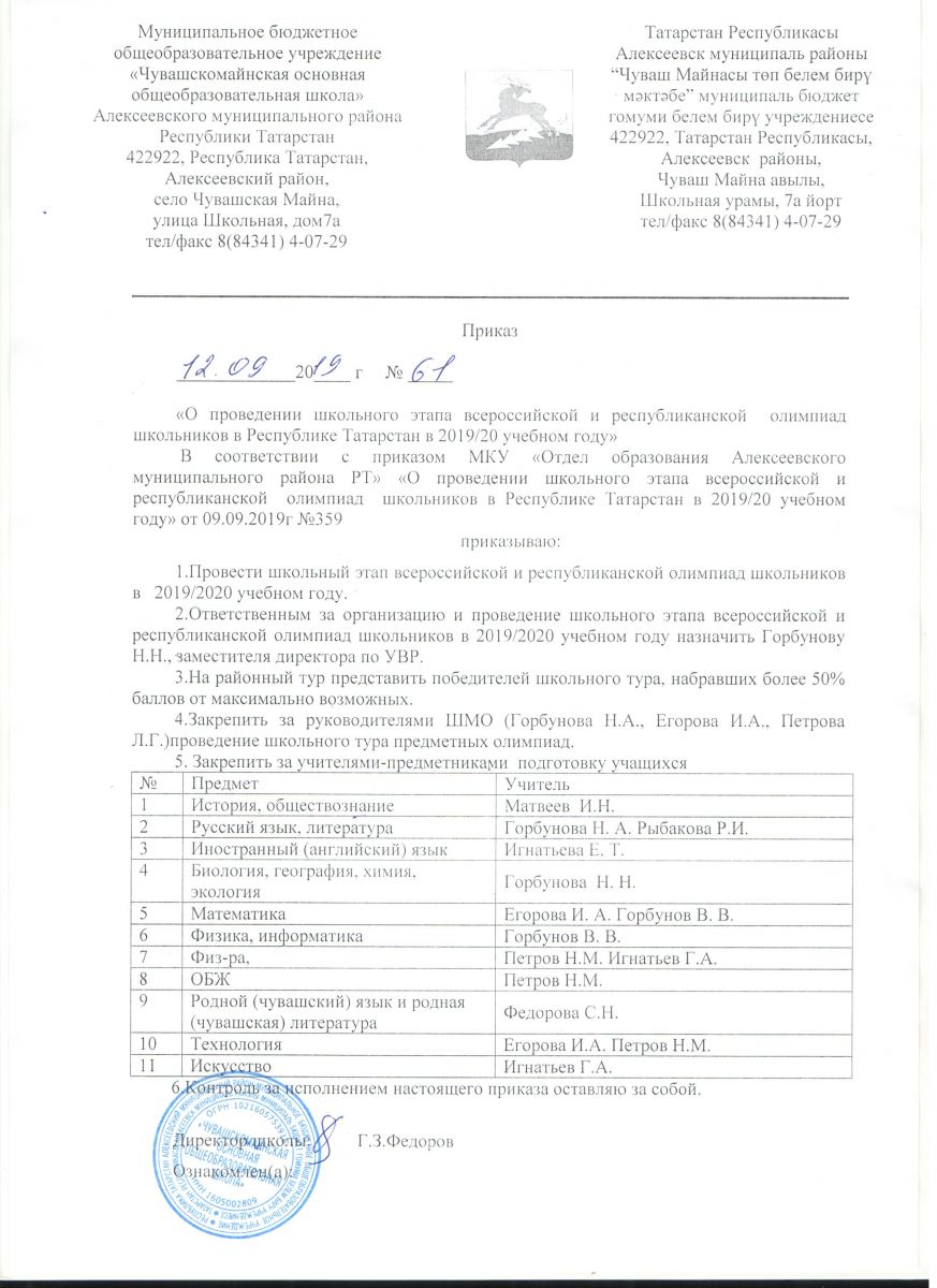 Приказ по школе