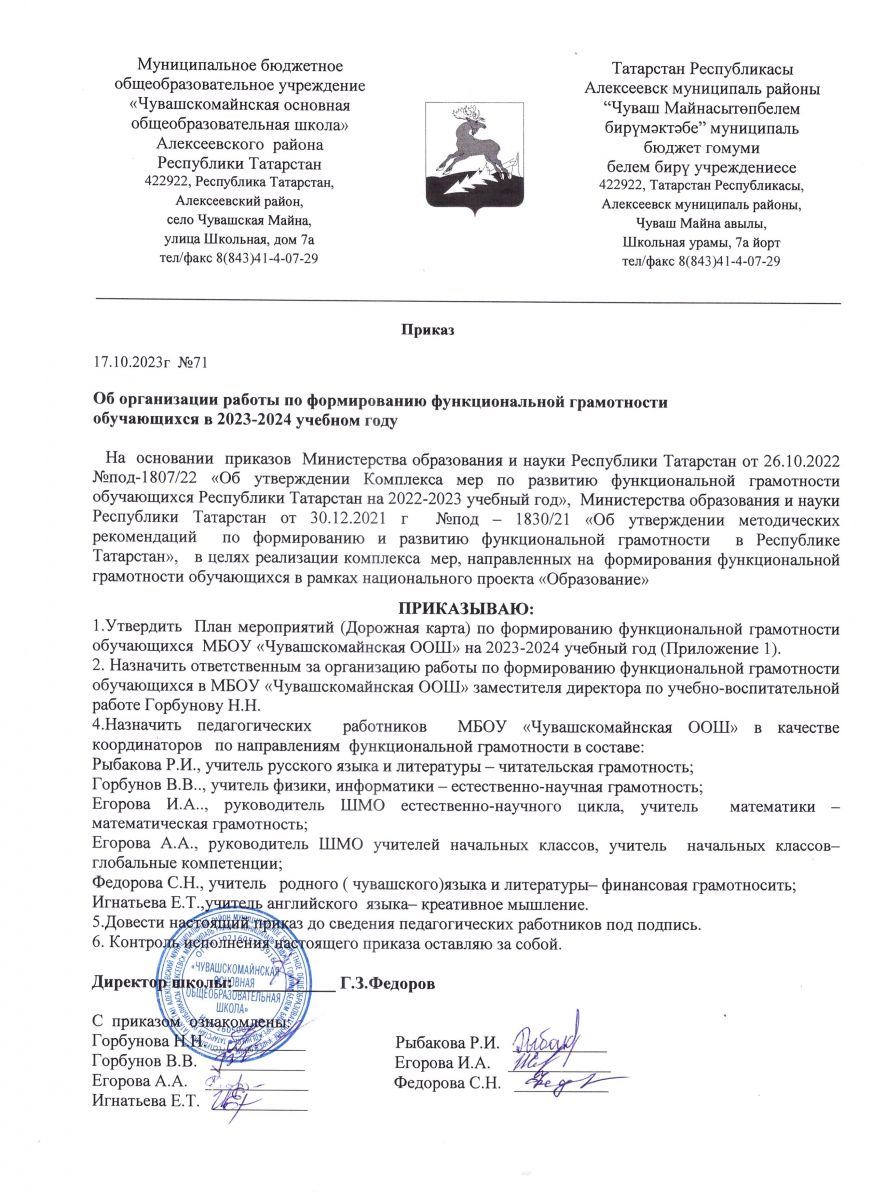 Приказ "Об организации по формированию ФГ обучающихся в 2023-2024 учебном году"