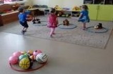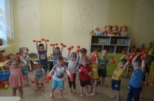 На занятии дети учились сравнивать по величине: большой, средний, маленький. В гости к детям из сказки пришли три медведя: Михайло Иванович, Настасья Петровна и Мишутка. Ребята и «гости» играли с мячами. Дети распределяли мячи, большие мячи – Михайло Ивановичу; средние мячи – Настасье Петровне и маленькие мячи – Мишутке.