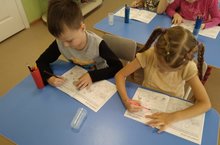 На занятиях по развитию речи дети выполняют задания в тетрадях. Рабочие тетради содержат задачи, выполнение которых основано на практических действиях (соединять, обвест, дописать и т.д.)