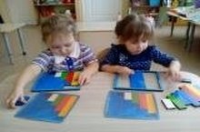 Дети учились размещать все палочки в планшете, а с помощью «Бусинок» изучали величину: большая, средняя и маленькая бусинка.