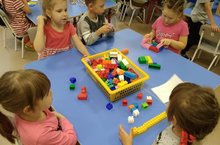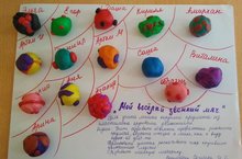Дети училичь лепить из пластилина округлые предметы круговыми движениями.