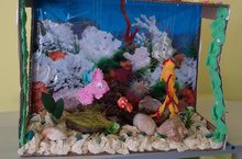 На занятии у детей формировались представления о рыбах, как о живых существах, живущих в воде, о строении рыб. Были закреплены приемы вырезывания и аккуратного наклеивания.