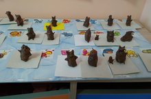 В старшей группе дети лепили медведя скульптурным способом -из целого куска пластилина.Предварительно познакомились с историей возникновения Богородской игрушки ,через просмотр презентации по теме .У каждого получился свой неповторимый образ мишки.