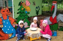Герои сказок Л.Толстого на игровых участках детского сада.
