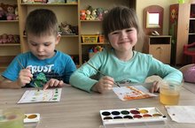 Воспитатель Сергевнина С.В. учила самых маленьких воспитанников нашего детского сада технике рисования краской (обмакивать кисть в краску по мере надобности), закрепляла умение правильно держать кисть. Рисование красками воспитывает аккуратность у детей и развивает их творческую активность.