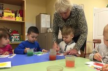 В младшей группе дети совместно с воспитателем Чекановой Н.А. рисовали настроение. Они по своему желанию выбрали цвет акварели и перенесли свое настроение на листок бумаги. Одновременно с этим дети учатся правильно держать кисточку, знакомятся с работой с водой и красками.