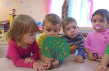 Дети младшей группы совместно с воспитателем Комлевой О.А. занимались лепкой, учились скатывать шарики из кусочков пластелина и прикреплять их на основу, тем самым развивая мелкую и общую моторику.
