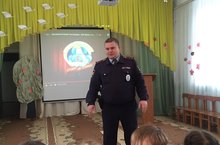 Визиты инспектора ГИБДД Р.Ж. Хусаинова в наш детский сад стали уже традиционной частью профилактической работы. Во время школьных осенних каникул многие дошкольники остаются дома со страшими братьями и сестрами. Родительский контроль в дневное время ослабевает, дети порой бывают предоставлены сами себе. Выходят на улицу без сопровождения взрослых. Рустем Жавдатович провел беседу с детьми и напомнил о правилах безопасного поведения на дороге. В подарок от инспектора за правильные ответы дети получили коврик-пазл.